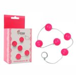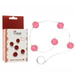 A Bolinha Tailandesa é composta por um cordão de silicone, com cinco bolas plásticas rígidas, com um diâmetro médio de 15mm (pequena). Uma argola na extremidade que facilita o seu uso.