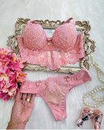 Este sofisticado conjunto é composto por duas peças essenciais: um sutiã com bojo e três fechos, e uma calcinha fio duplo, ambos projetados para realçar sua beleza e proporcionar o máximo de conforto.