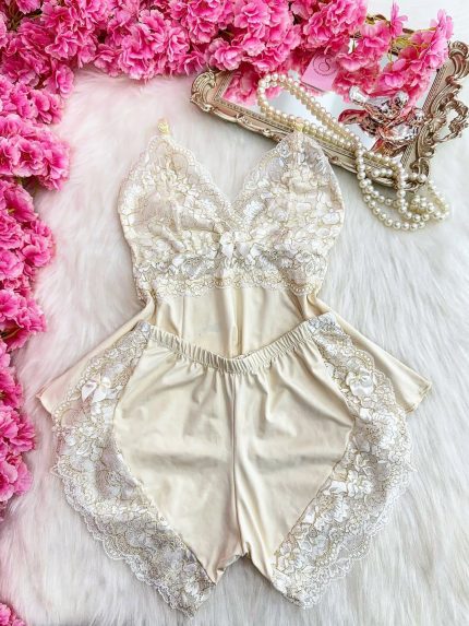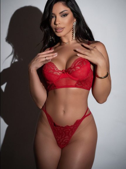 Acompanha calcinha com tiras laterais e aplicação de correntes frontais, completando o look com sensualidade e um toque de dominância.