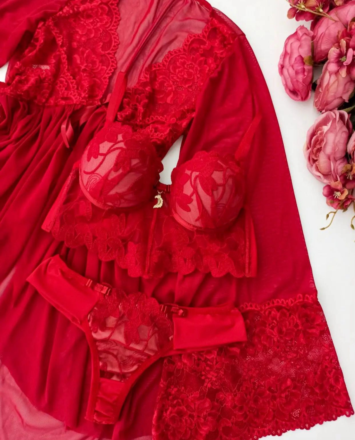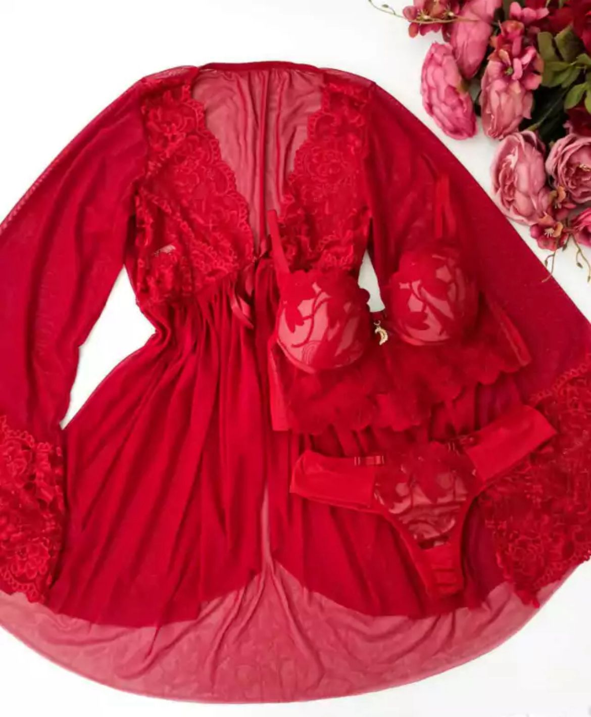 Kit completo: robe + conjunto de lingerie