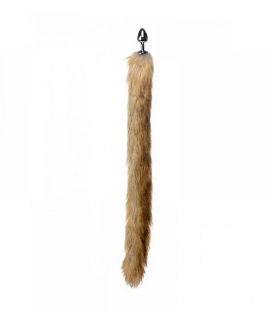 Tamanho M: 7,5 cm de comprimento e 3,5 cm de diâmetro (medidas aproximadas); e Rabo com 50 cm de comprimento (medidas aproximadas);